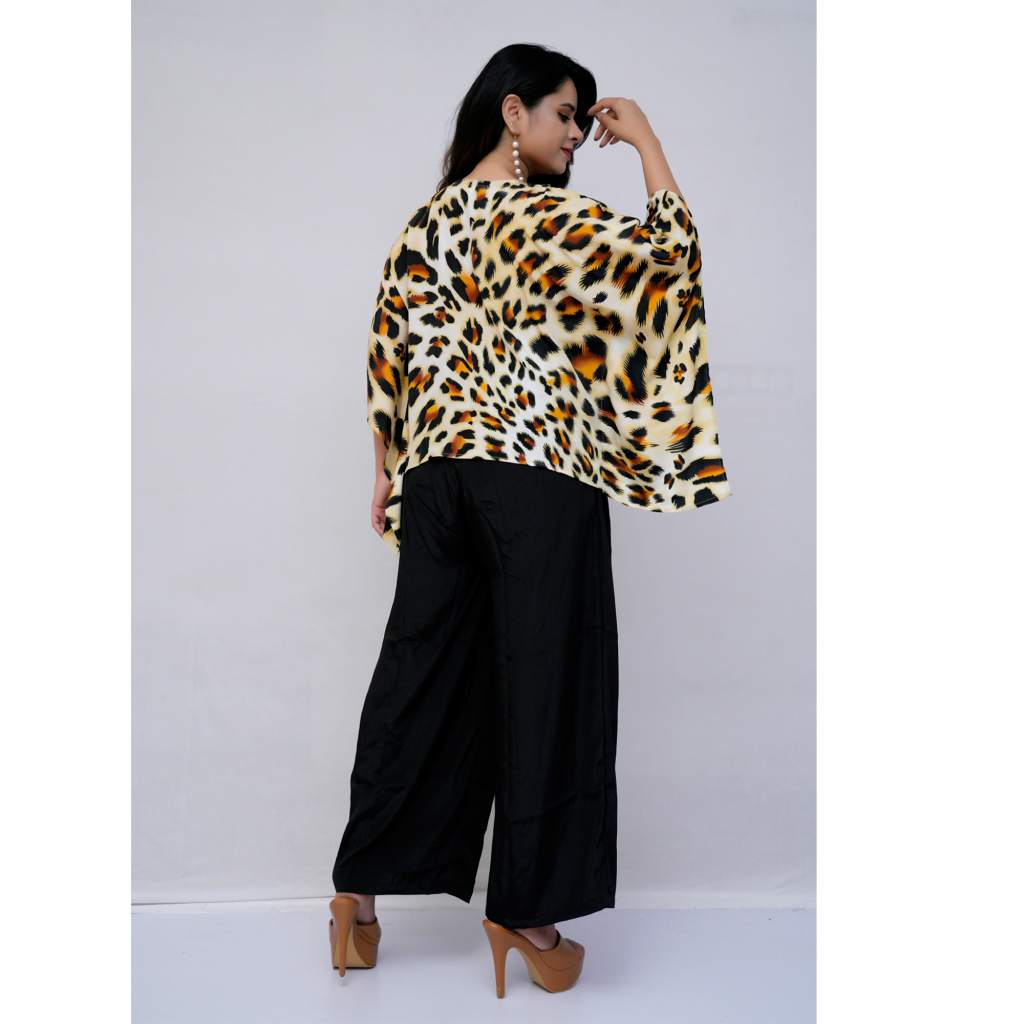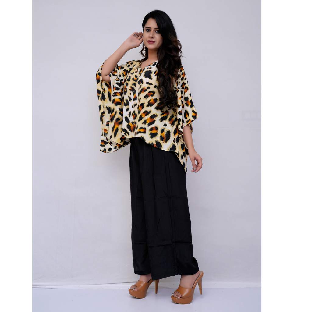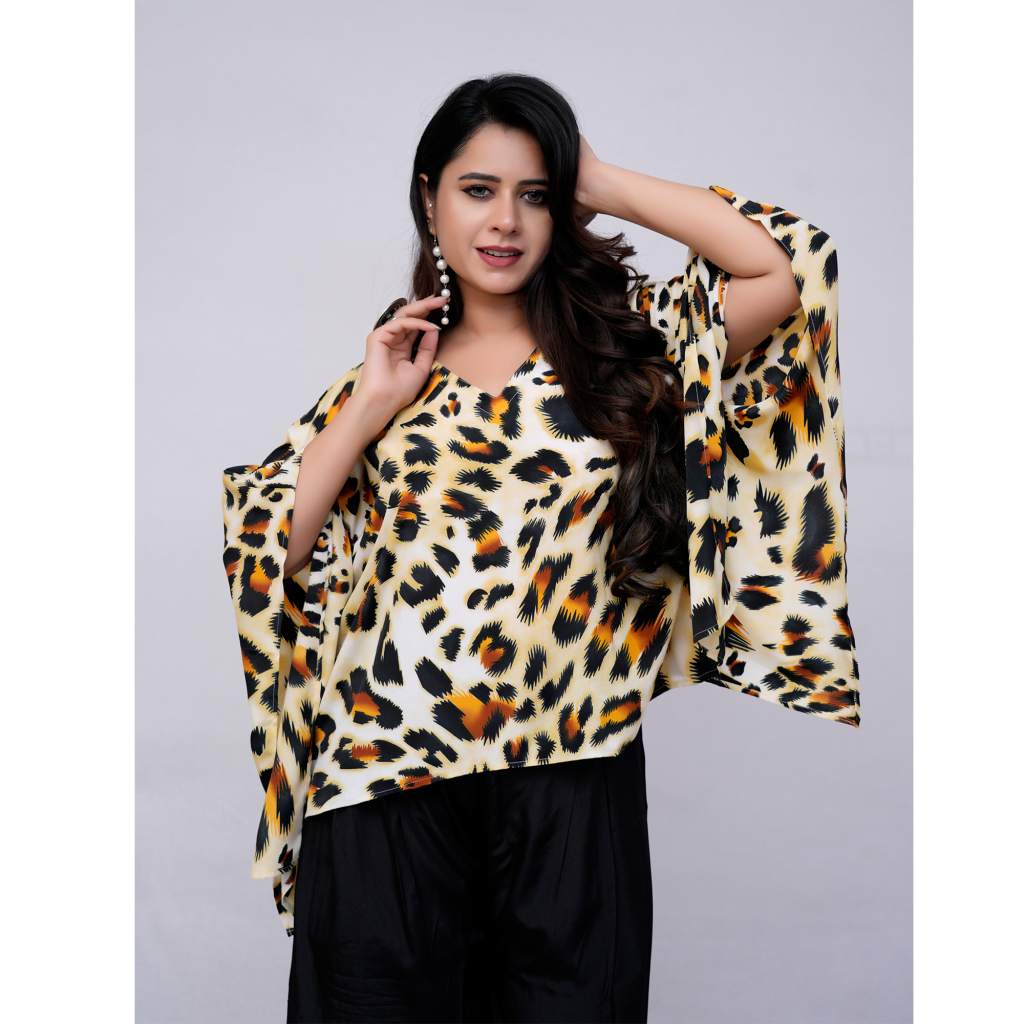 Top: Animal Print Polyester Kaftan (Free Size)