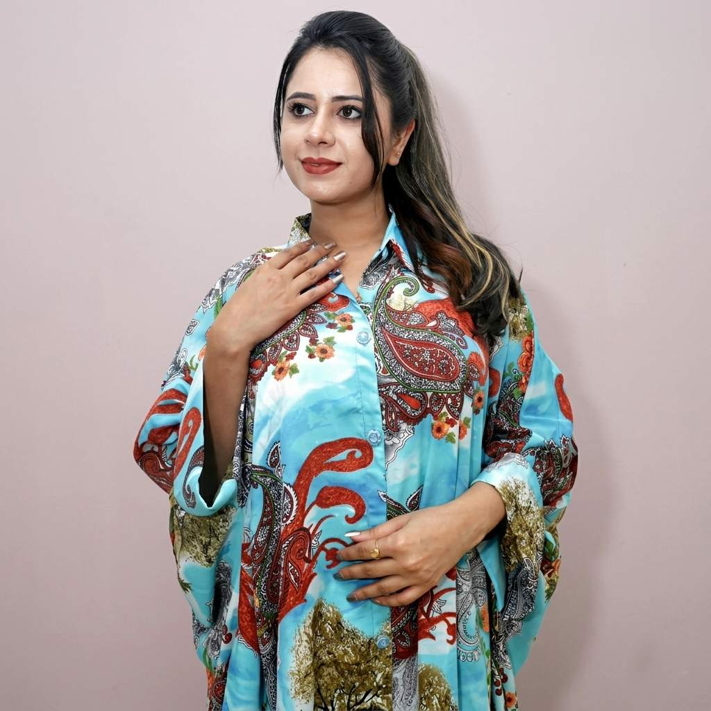Upgrade your collection with this trendy printed polyester kaftan featuring a collar neck and shirt-style design. Designed for modern comfort and effortless style, this kaftan blends fashion with functionality, making it perfect for resort wear, beachwear, and casual outings.