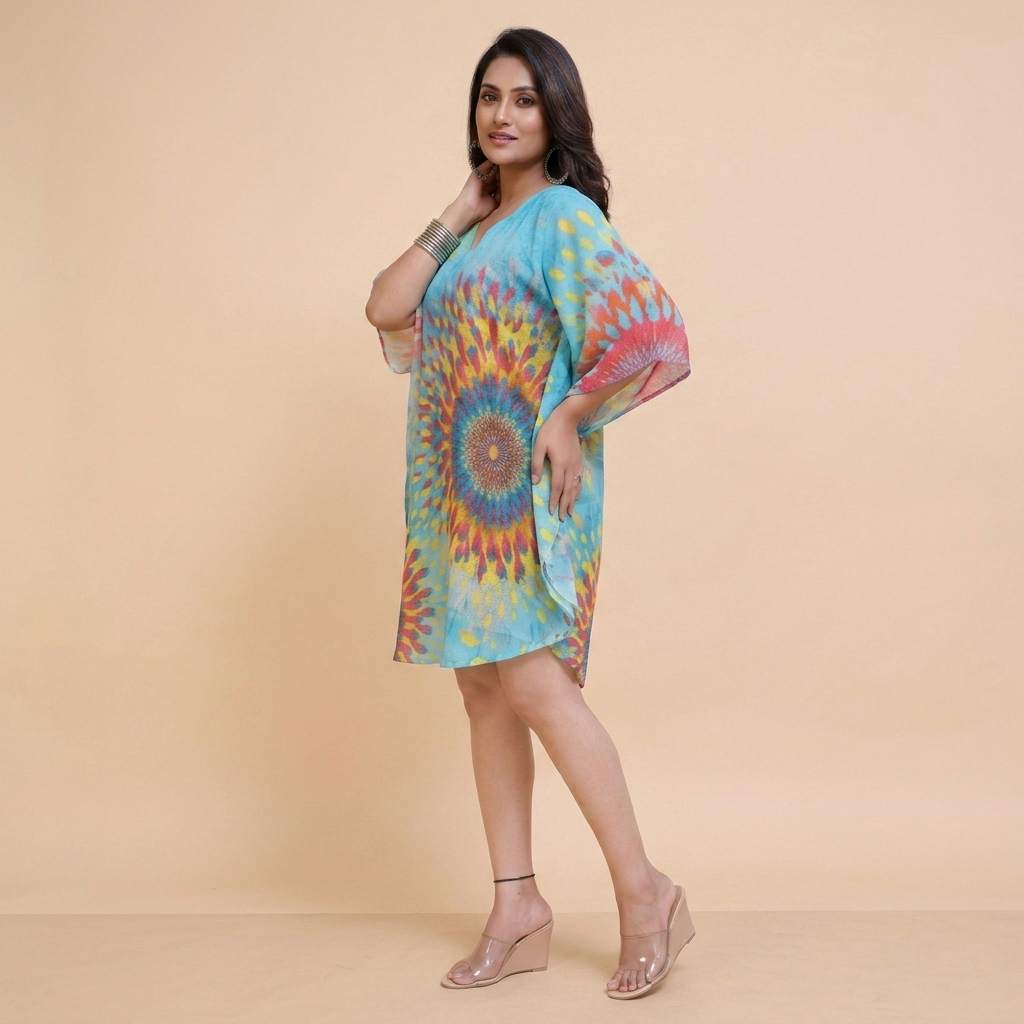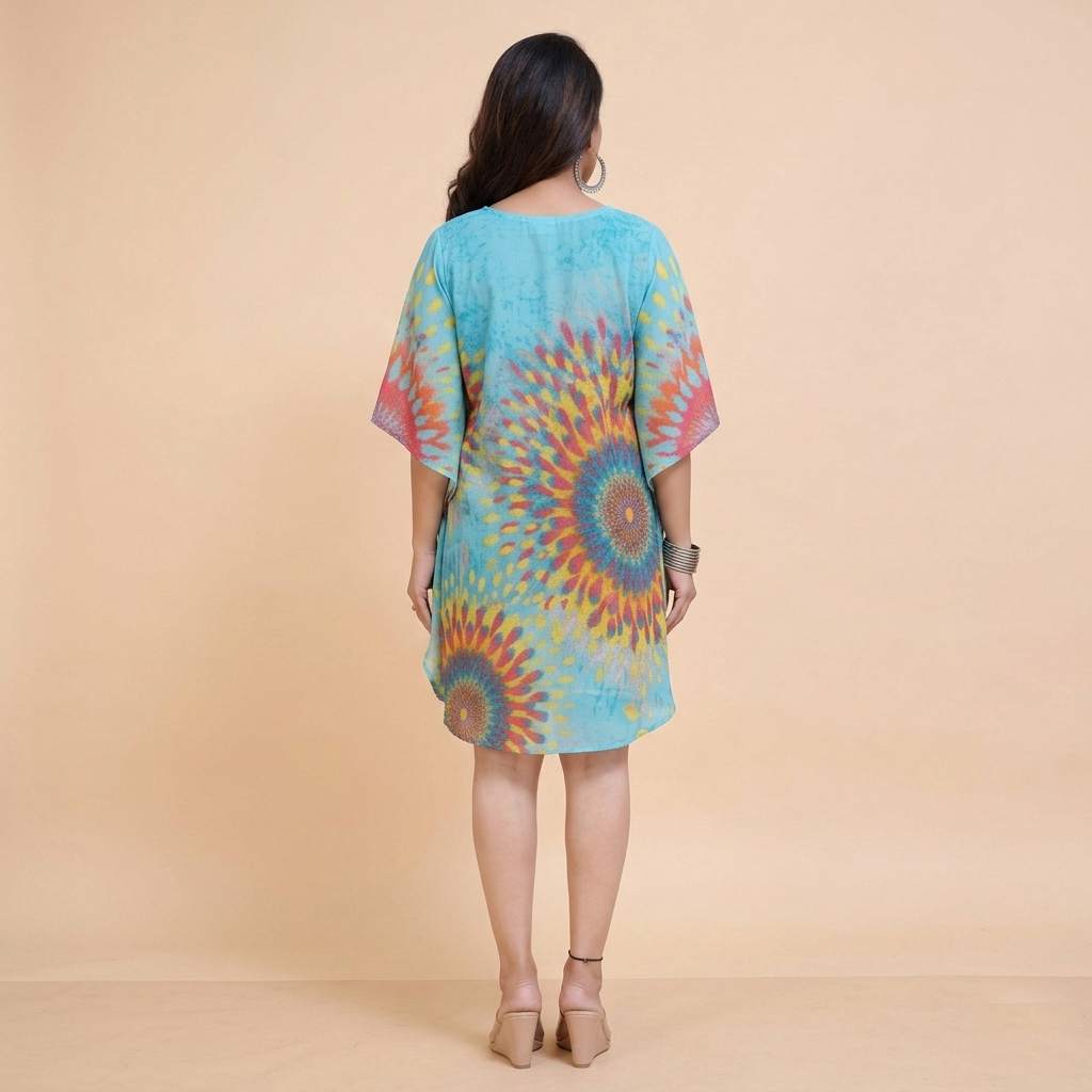 Elevate your summer collection with this stylish free size cotton kaftan dress from Sun-Rose Fashions. Designed with vibrant tie-dye patterns and a relaxed silhouette, this kaftan is perfect for beachwear, resort wear, and casual lounging.