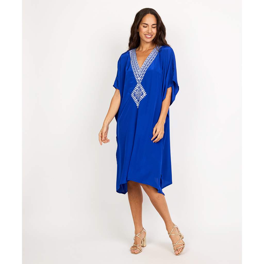 Long V Neck Embroidered Kaftan with Sleeve Detailing
