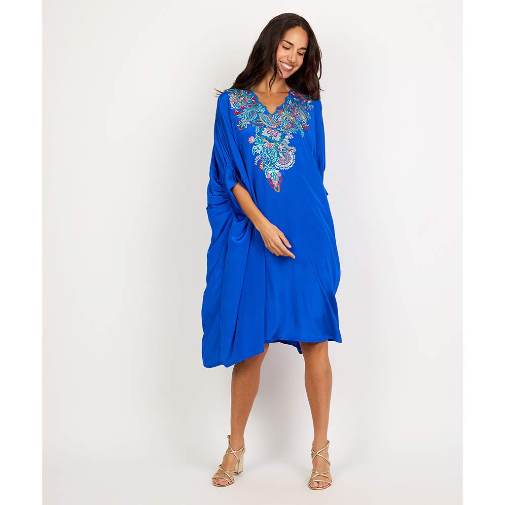 Long V Neck Embroidered Kaftan with Sleeve Detailing