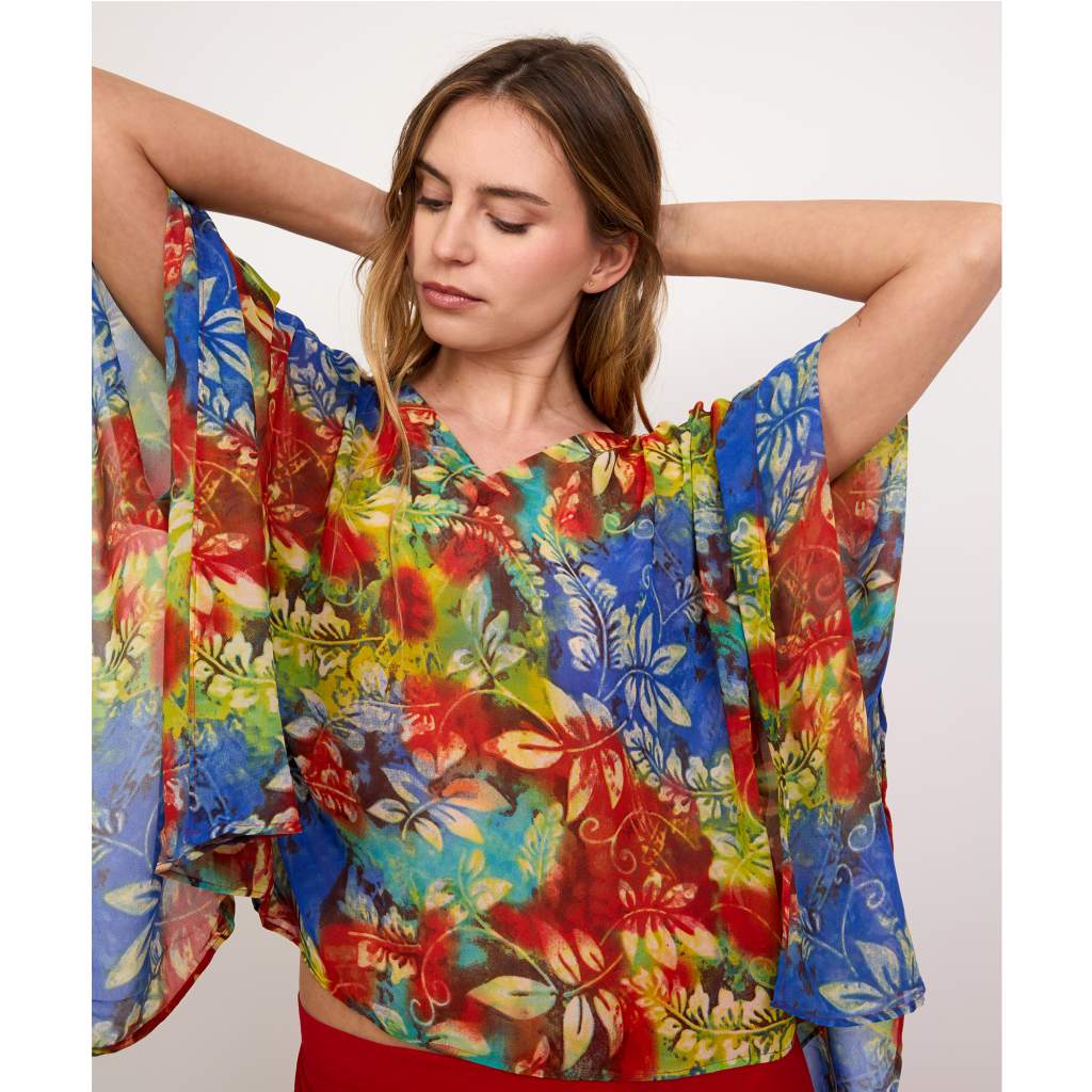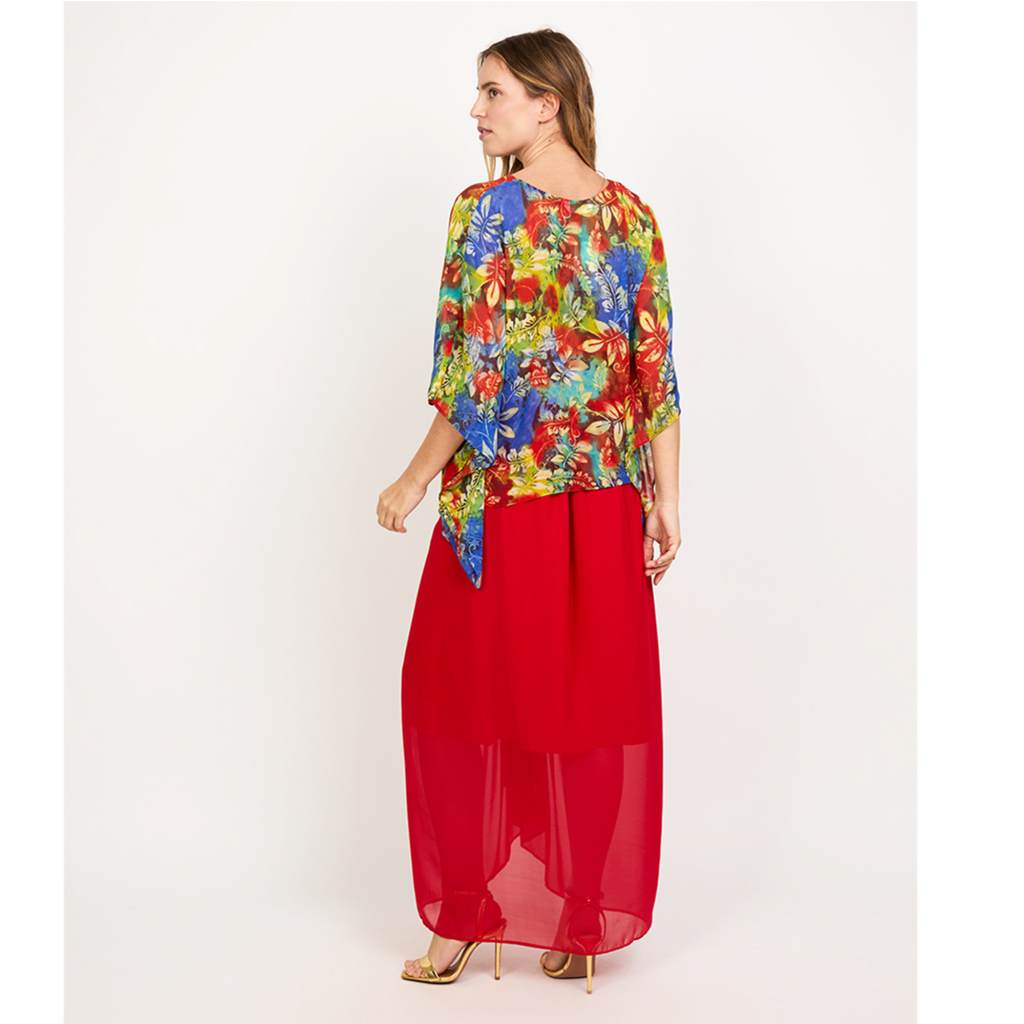 Brighten your wardrobe with this stylish Tropical Print Kaftan with Dhoti set. The breezy georgette kaftan features vibrant tropical prints and pairs perfectly with a soft crepe dhoti pant. A free-size fusion outfit that's ideal for summer outings, resort stays, or festive brunches.
