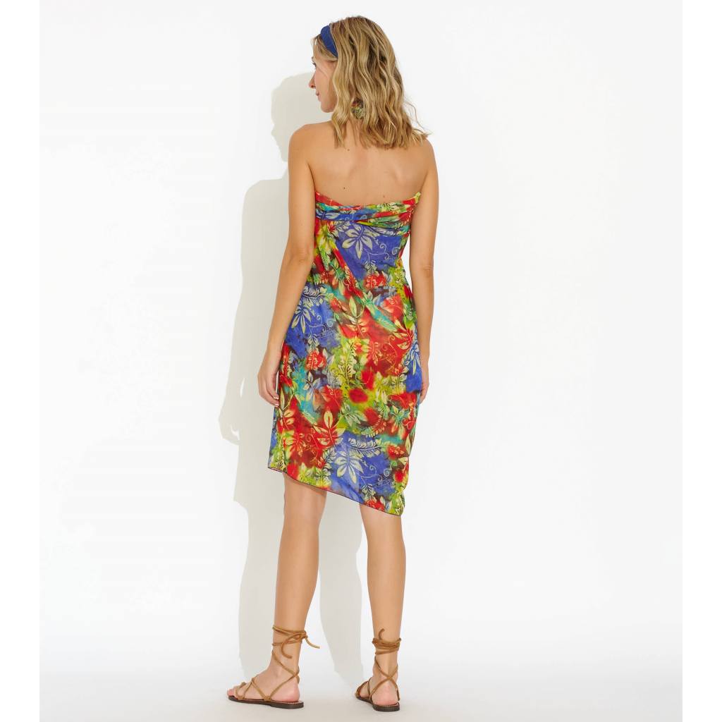 Bring tropical vibes to your beach days with our Multicolor Floral Georgette Sarong with Buckle. Bursting with vibrant hues of red, blue, green, and yellow, this floral sarong can be styled effortlessly as or a chic wrap. Made with lightweight Georgette, it flows beautifully while keeping you cool and comfortable. The decorative buckle adds a touch of elegance, making it the ultimate resort-ready cover-up.