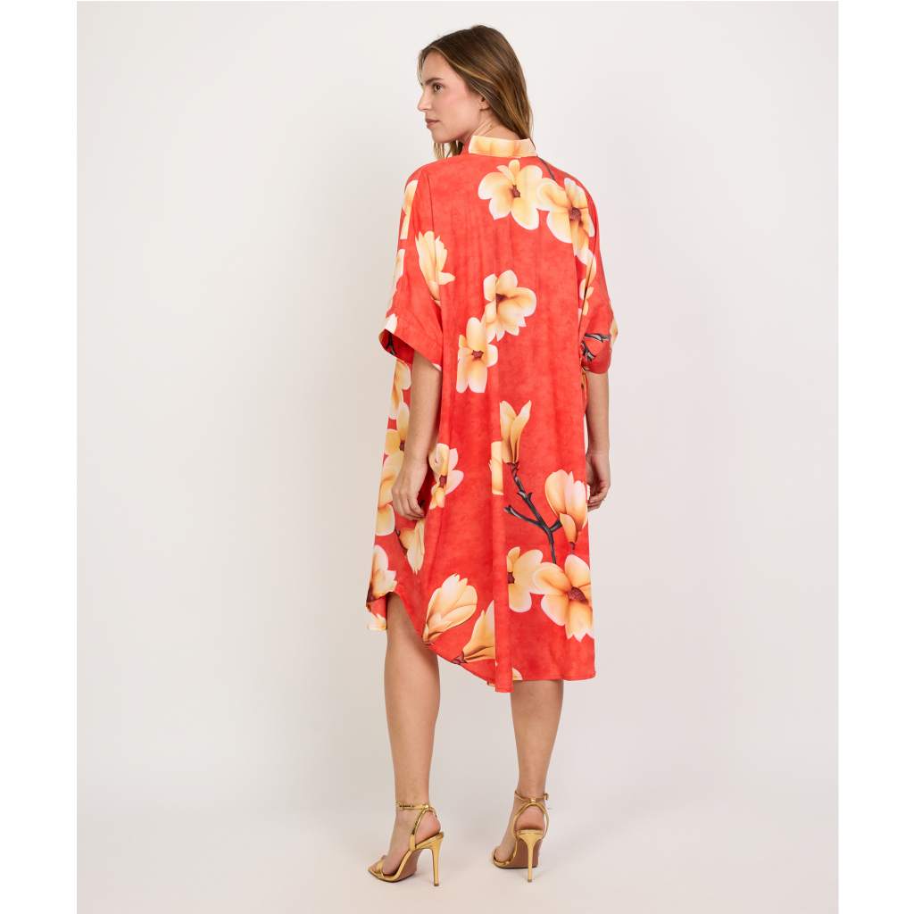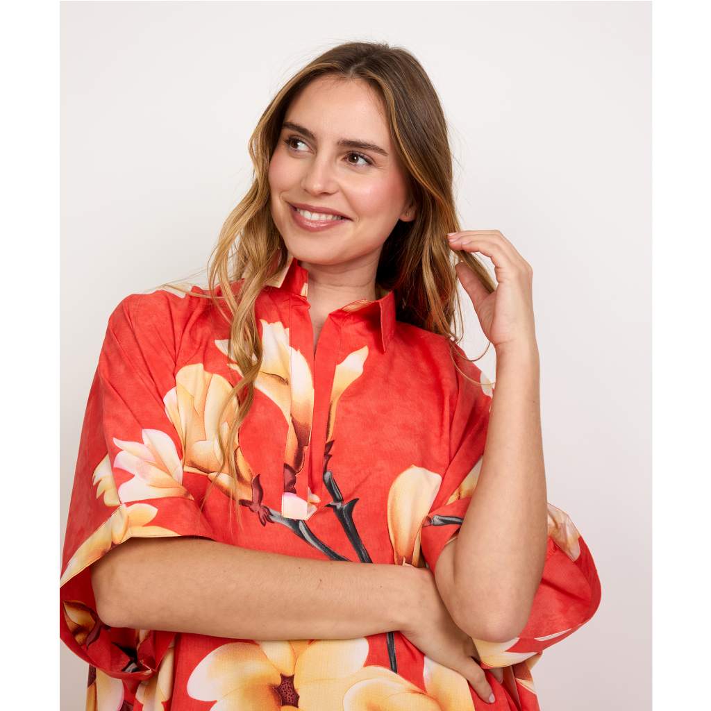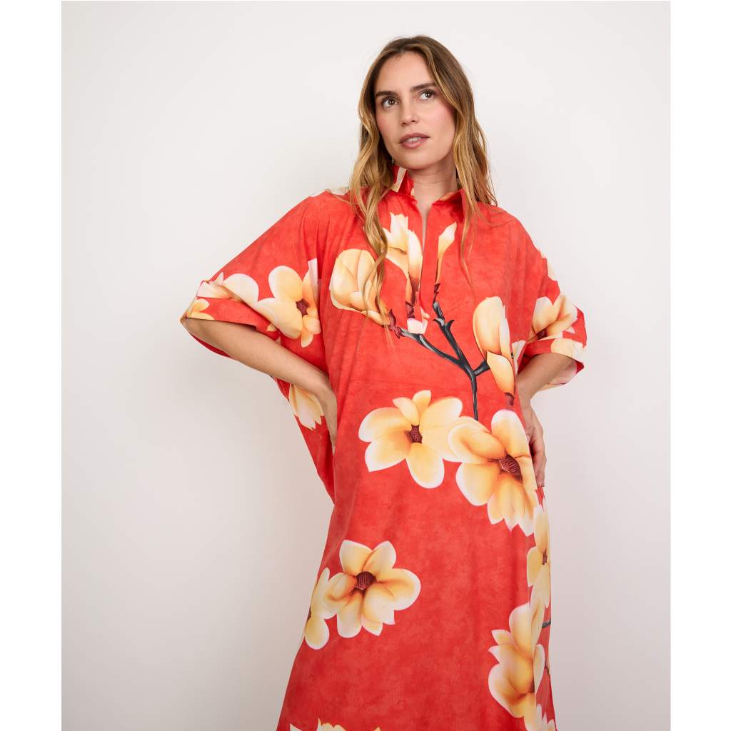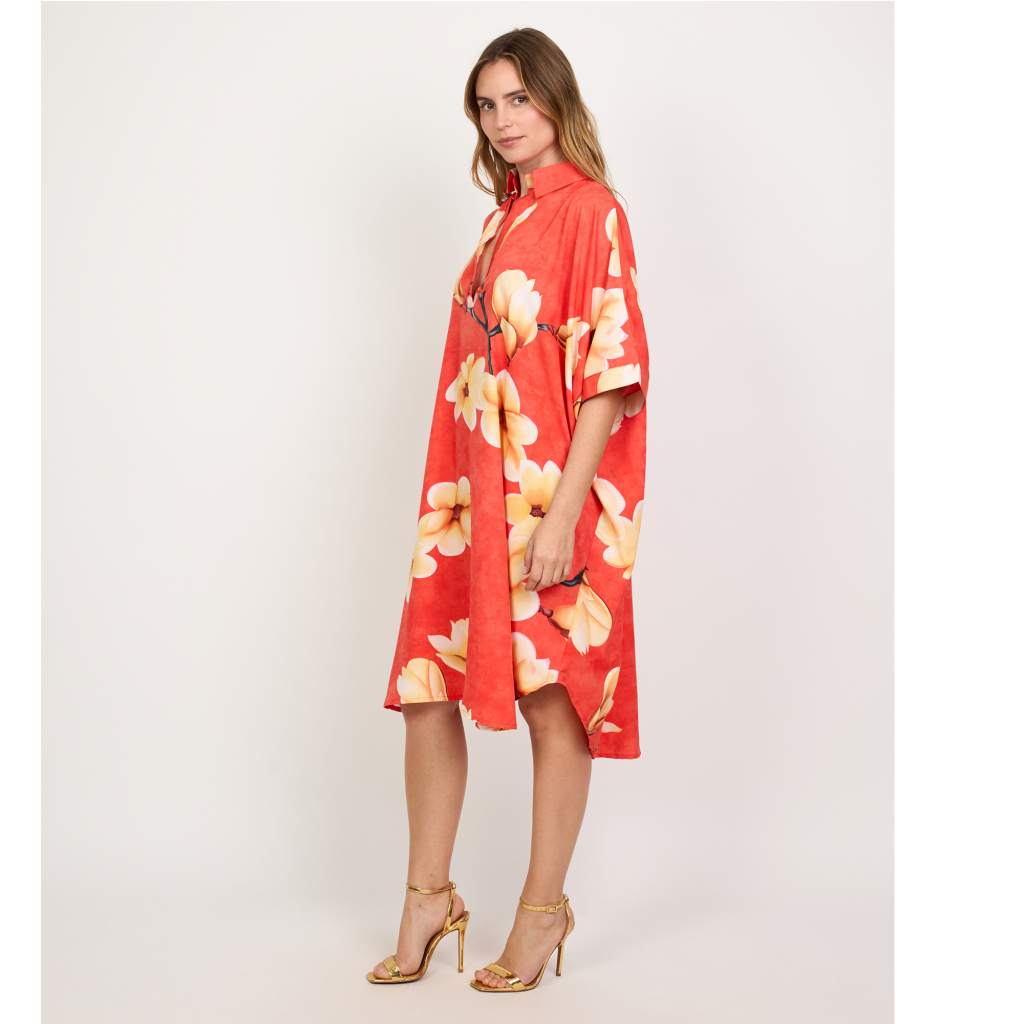 A fresh take on everyday style, this floral print kaftan dress features a classic collar neckline and a flattering knee-length cut. Made from soft polyester in a relaxed free-size fit, it’s perfect for casual days, brunches, or holiday strolls.
