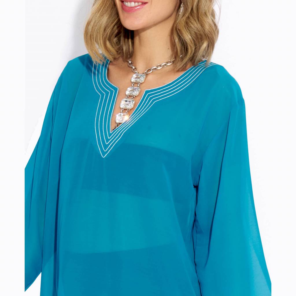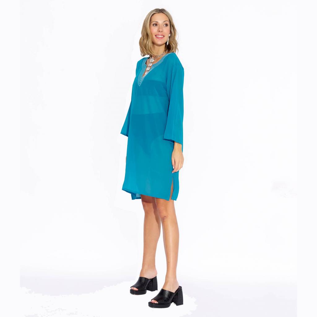 Elevate your everyday elegance with this beautiful teal blue georgette kurta dress from Sun-Rose Fashions. Designed with a refined V-neckline and delicate neckline detailing, this kurta offers a sophisticated and modern look perfect for casual wear, summer outings, and resort fashion in Spain.