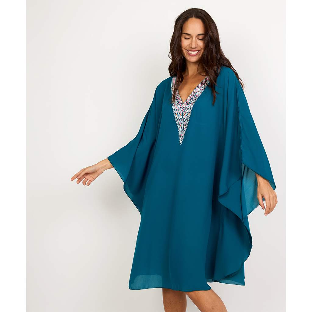 V Neck Embroidery Partywear Kaftan in beautiful color.