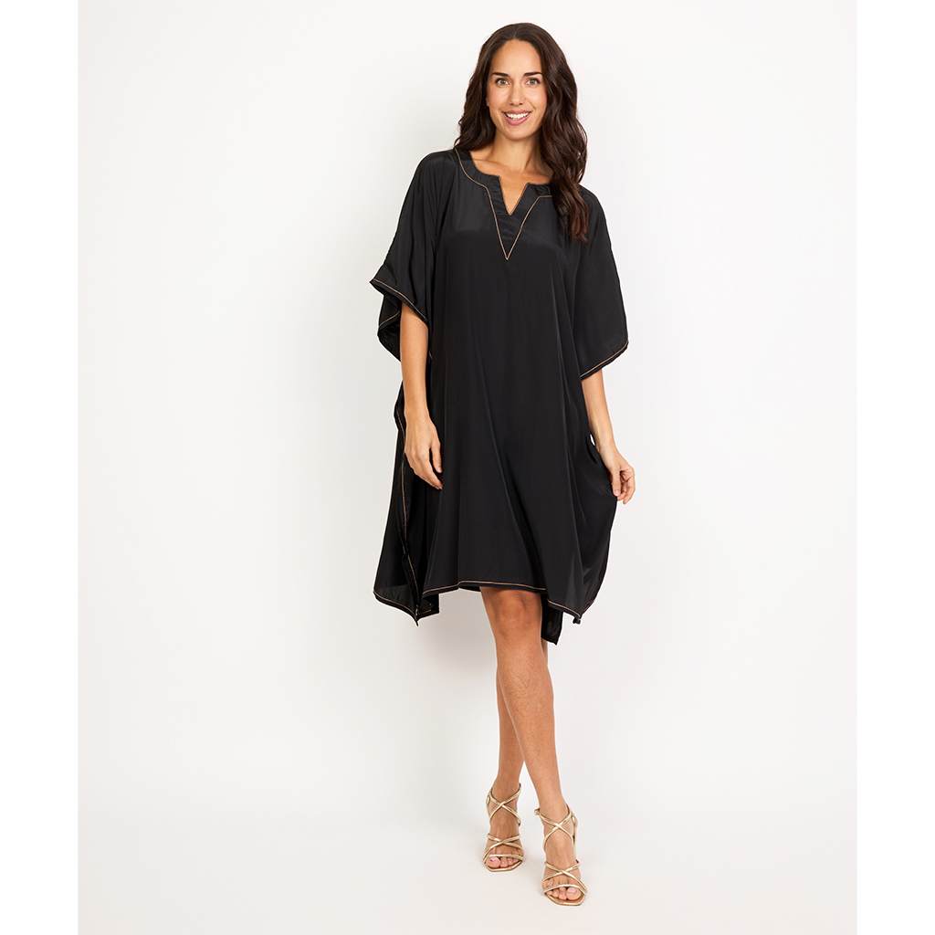 Experience effortless elegance with this short kaftan, crafted from luxurious crepe silk.