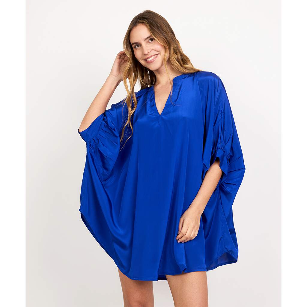 Experience effortless elegance with this short kaftan, crafted from luxurious crepe silk.