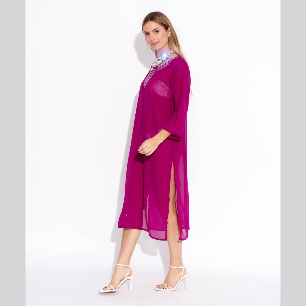 Make a bold and elegant statement with this stunning wine color georgette kurta dress from Sun-Rose Fashions. Designed with a refined embroidered V-neckline and a sleek, modern silhouette, this kurta offers timeless sophistication perfect for summer fashion and resort wear in Spain.