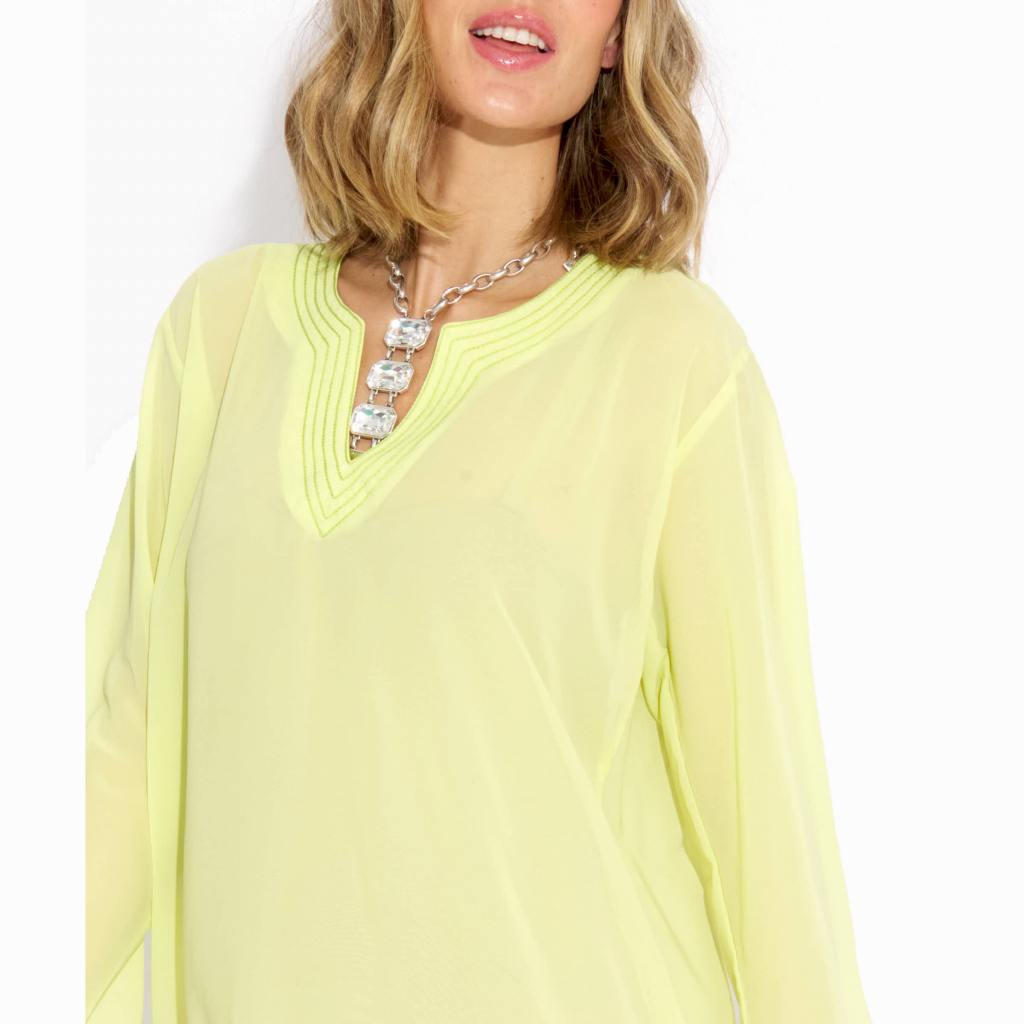Make a bold and elegant statement with this stunning Yellow georgette kurta dress from Sun-Rose Fashions. Designed with a refined embroidered V-neckline and a sleek, modern silhouette, this kurta offers timeless sophistication perfect for summer fashion and resort wear in Spain.