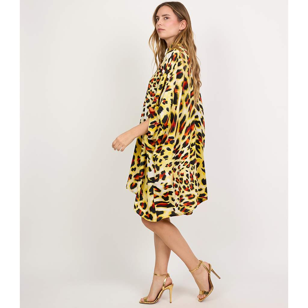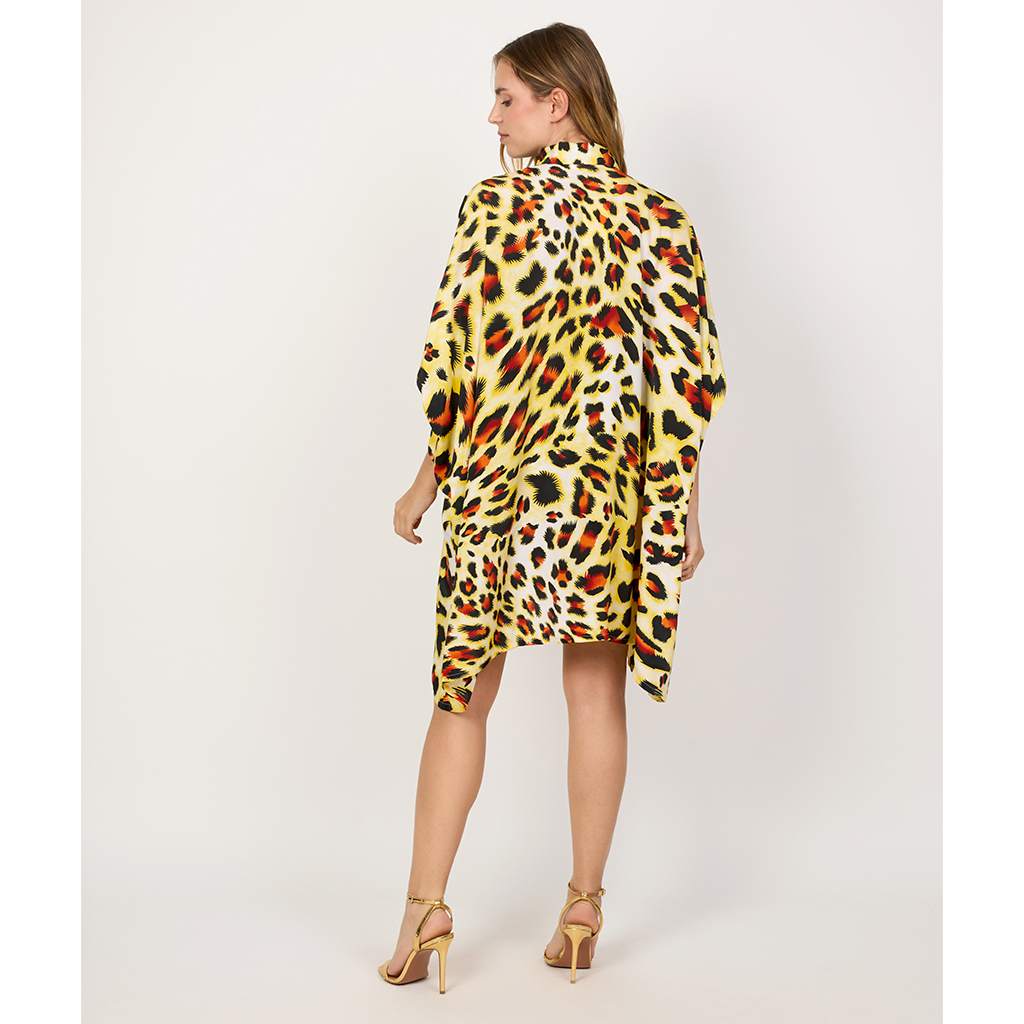 Featuring eye-catching animal prints in earthy or vibrant tones, it comes with a collar neckline, button-down front, and wide cuff sleeves for added flair. Wear it as a long shirt, beach cover-up, or even a casual dress — it's as versatile as it is fierce.