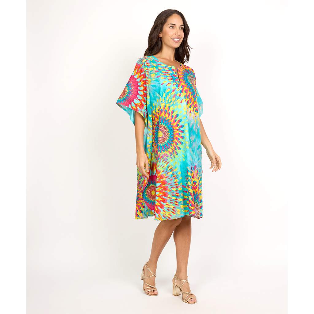 Add a pop of color to your wardrobe with this vibrant printed short kaftan, made from soft and breathable cotton fabric. Designed in free size for a relaxed and comfortable fit, it's perfect for casual outings, lounging, or beachwear.