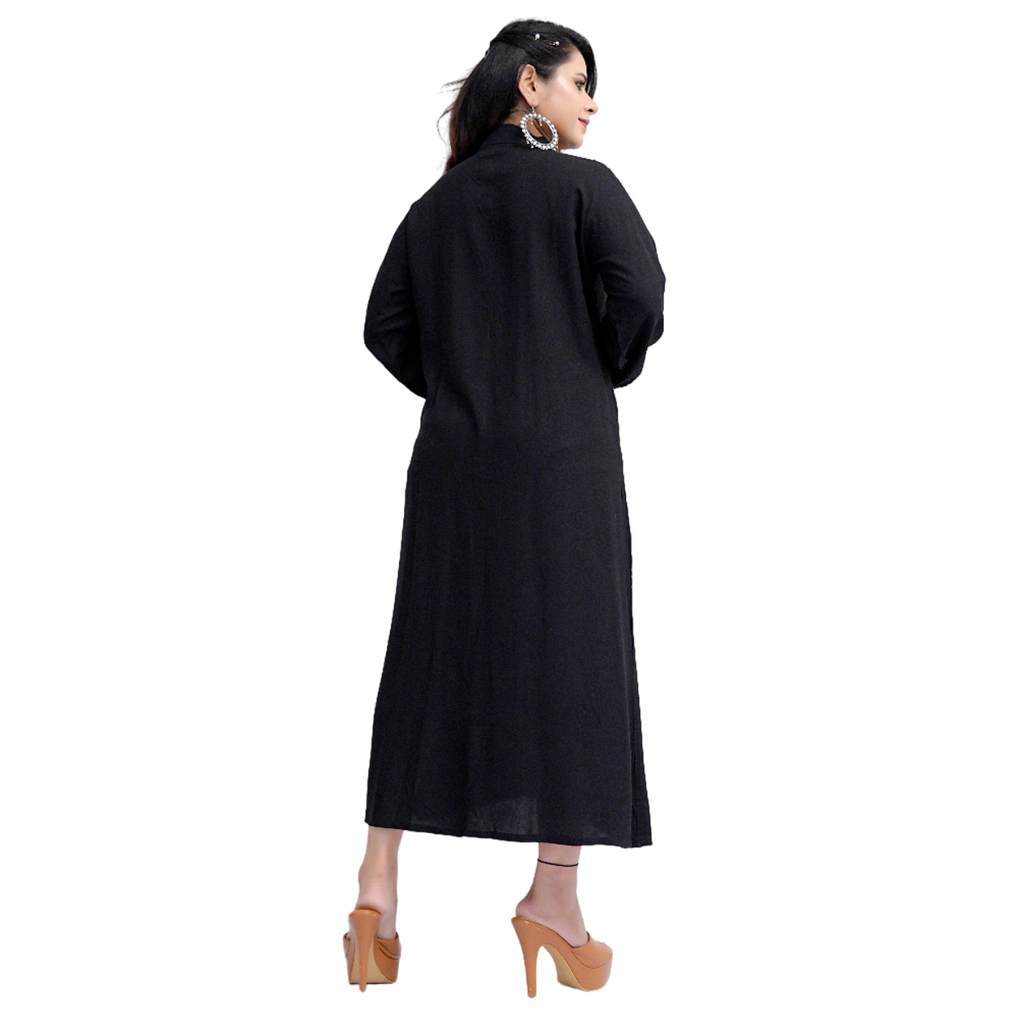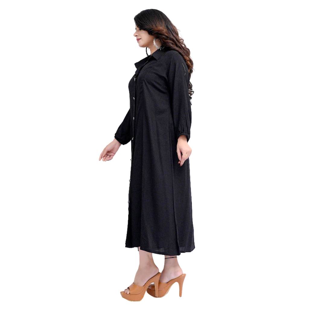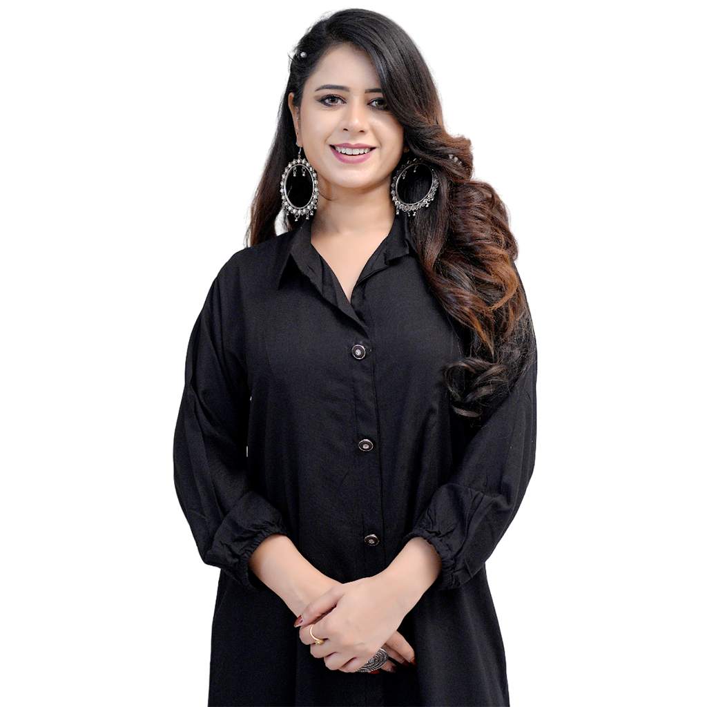 Crafted from soft, breathable fabric, it flows effortlessly on all body types. The solid color palette keeps the look timeless, while the kaftan-style cut ensures easy movement and flattering drape. Ideal for workdays, casual outings, or relaxed weekends, this versatile piece can be styled as a shirt dress, lounge outfit, or even a modern kurta.