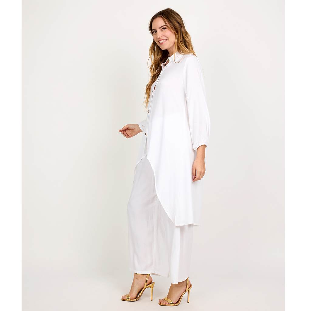 The kurta features a stylish high-low design with a button-front style and classic shirt collar, giving it a modern and sophisticated touch.